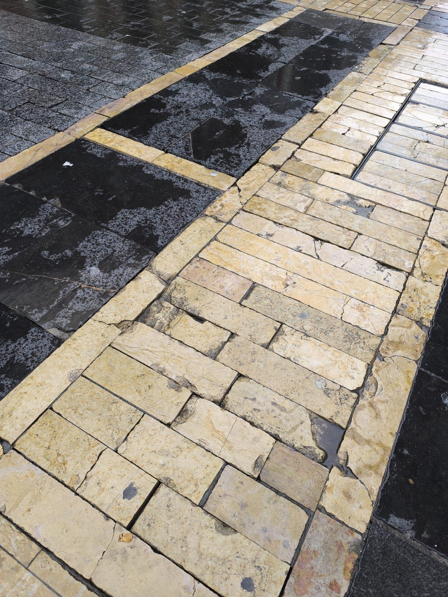 Estos son los adoquines de la calle Ancha que están siendo renovados en el Plan integran de remodelación del pavimento del entorno de la calle Ancha y la catedral de León cuya primera fase comenzó este lunes. Es hora de despedirnos de este suelo dañado.