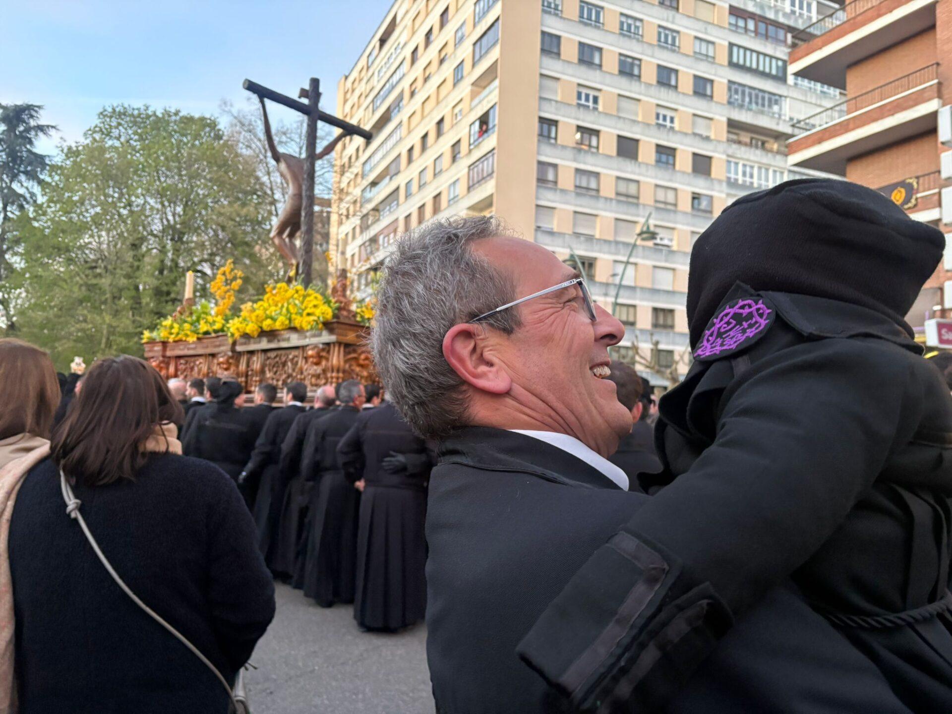 Con solo diez meses este paponín ya sabe lo que es formar parte de una gran cofradía. Esta mañana, en brazos de su orgulloso abuelo, ha podido formar parte de la Procesión de los Pasos del Dulce. Devoción y tradición que se mama en casa desde pequeños.