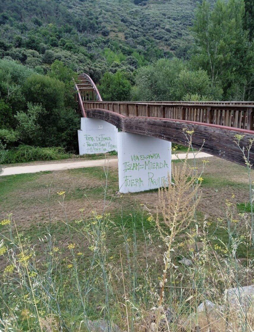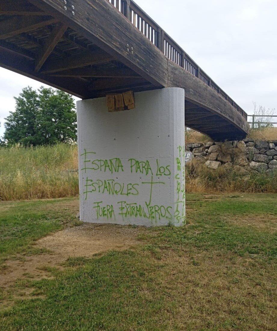 ICAL. El secretario de Migraciones de la Comisión Ejecutiva Municipal del Partido Socialista de Ponferrada, Jansel Ferreras, denunció este domingo la aparición de pintadas “xenófobas y racistas aparecidas” en el puente del Paseo del Río en Ponferrada, en las que se pueden leer mensajes como ‘España para los españoles’, ‘Fuera extranjeros’, ‘Viva España’, ‘Islam = mierda’, ‘Fuera paguitas’ o ‘Fuera de España panchitos moros y negros’, cuya retirad exigieron de forma “inmediata”.