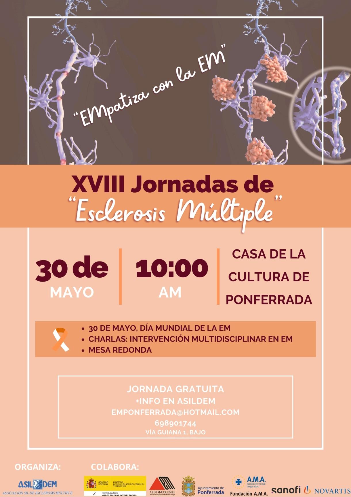 La Asociación Silense de Esclerosis Múltiple (ASILDEM) se complace en anunciar la celebración de sus XVIII Jornadas de Esclerosis Múltiple, un evento de difusión y sensibilización que tendrá lugar el próximo 30 de mayo en la Casa de la Cultura de Ponferrada, coincidiendo con el Día Mundial de la Esclerosis Múltiple.