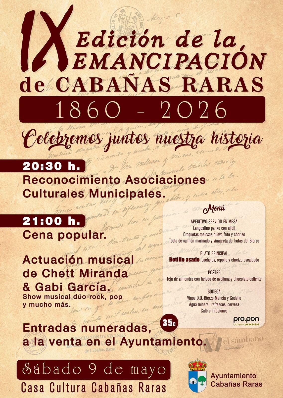 La localidad de Cabañas Raras celebrará el próximo sábado, 9 de mayo, la novena edición de la Emancipación de Cabañas Raras 1860-2026, en la que se celebra un hecho histórico.