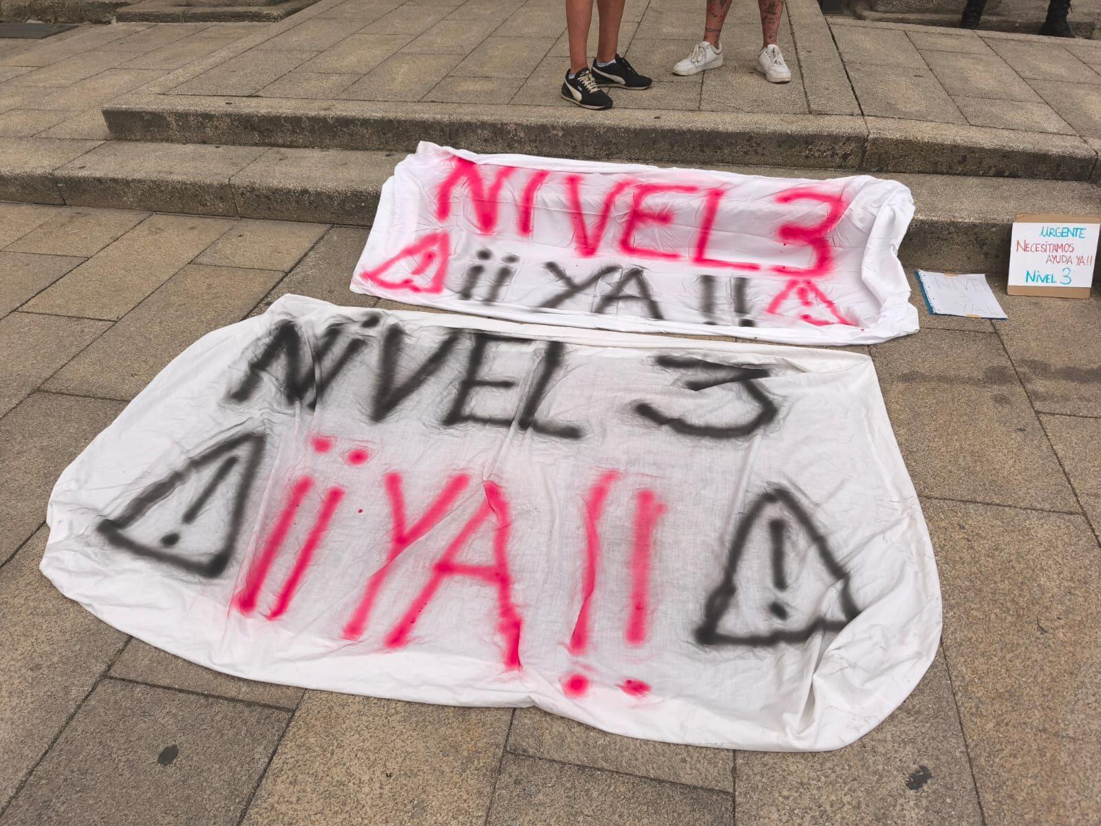 Los promotores desplegaron pancartas con su reclamación frente a la sede consistorial. “Los pueblos están en llamas. Pagamos impuestos para algo, para que nos protejan y ayuden. Necesitamos visibilidad”, remarcaron.