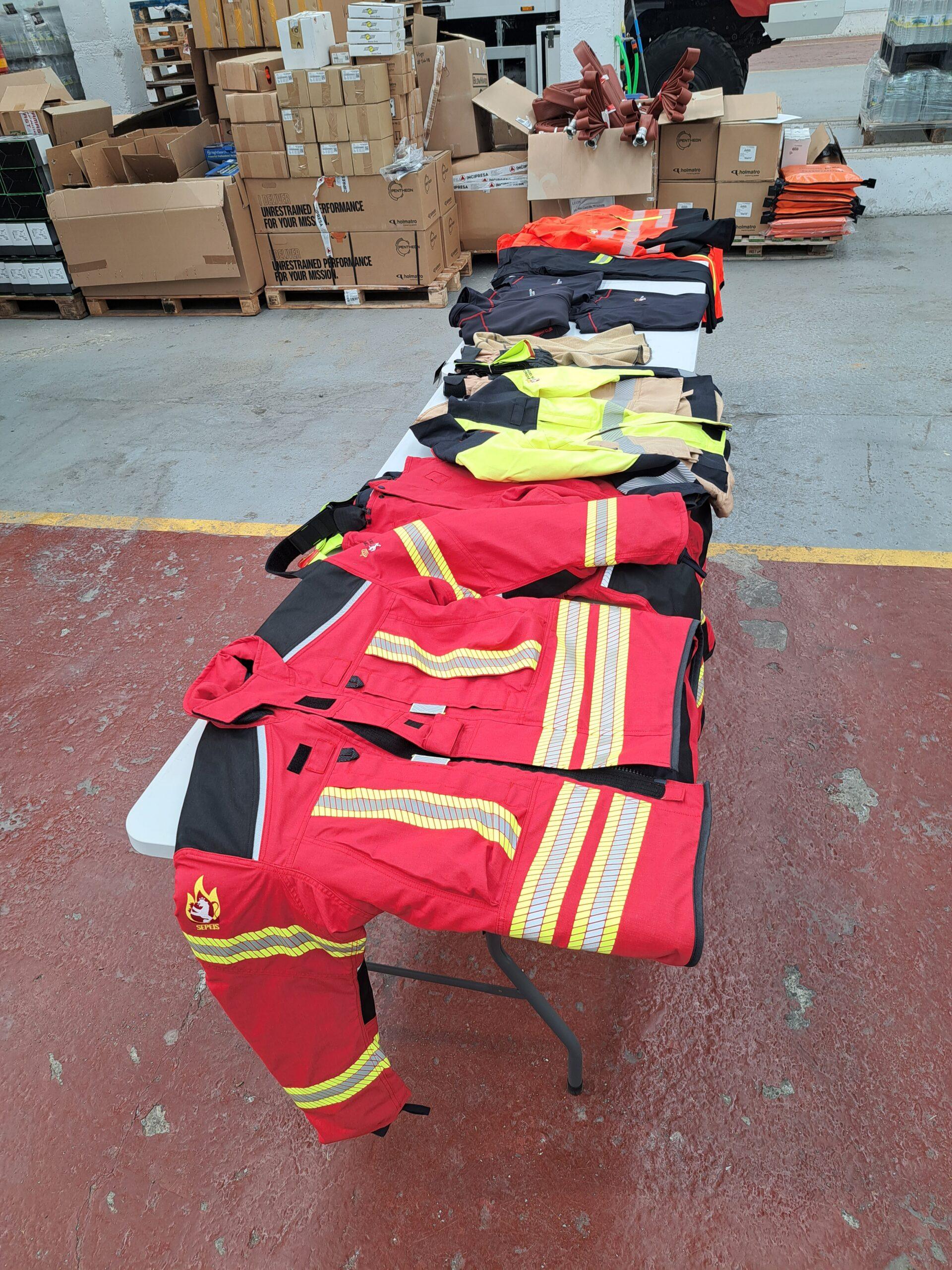 - El material incluyen EPI, trajes de rescate técnico, ropaje para fenómenos meteorológicos adversos y pantalones, camisetas, chaquetas y polos para el parque