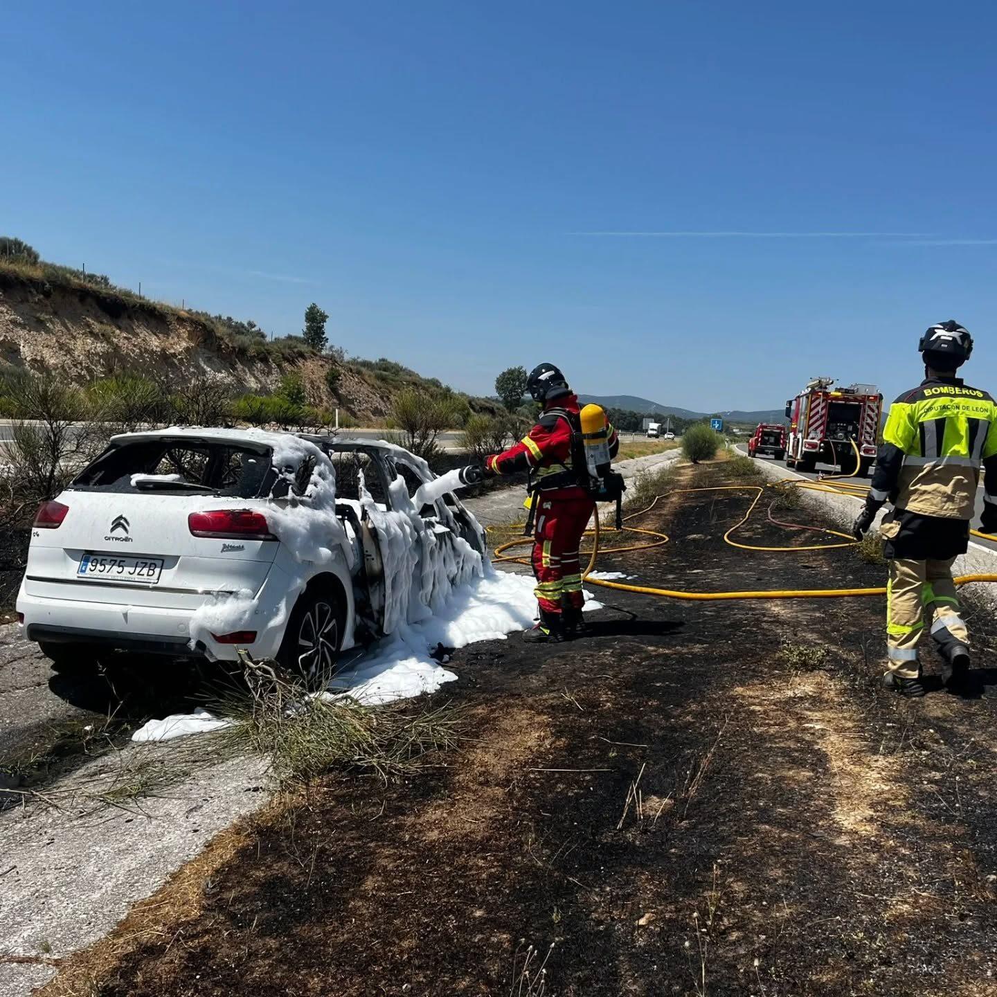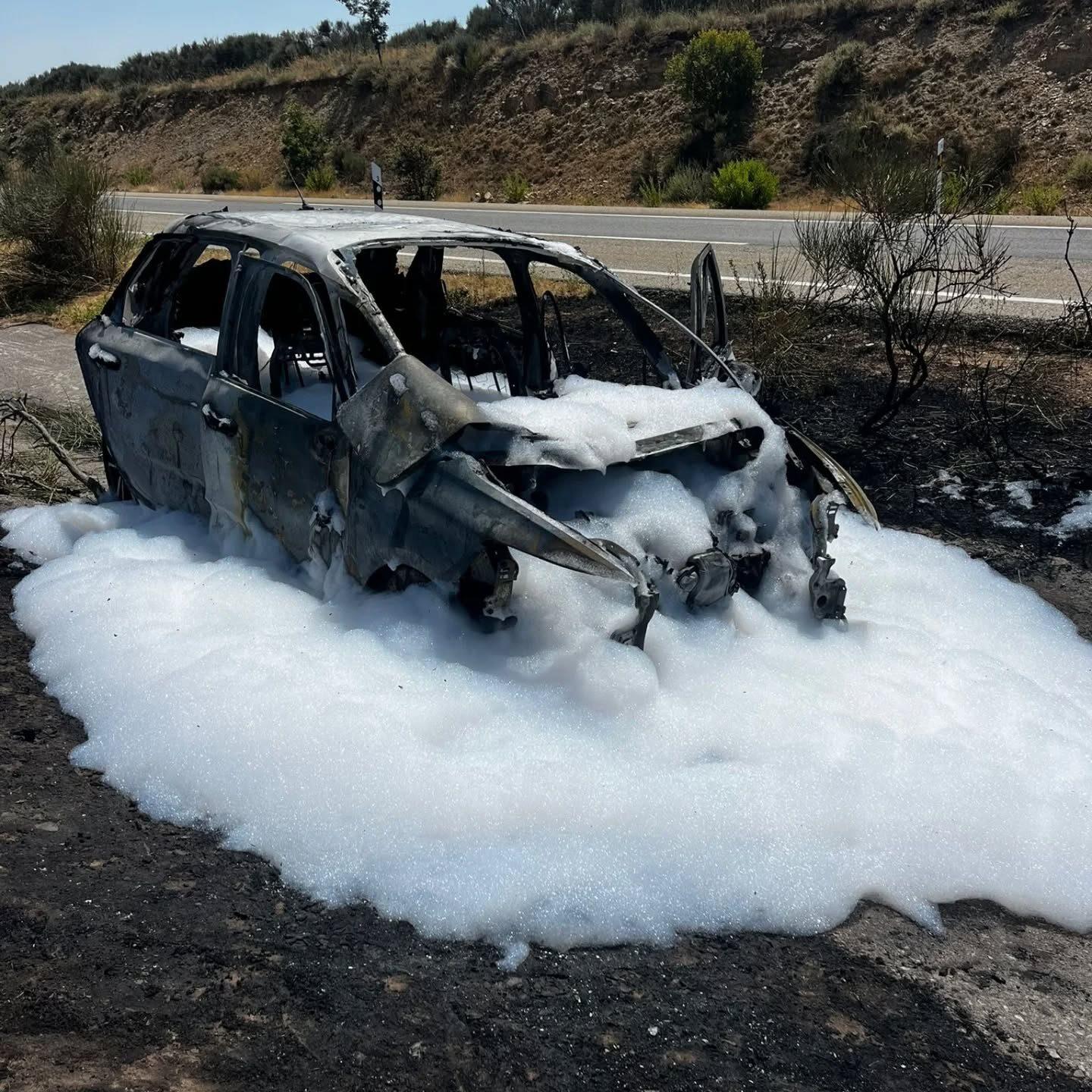 A su llegada, los bomberos se encontraron con un vehículo completamente calcinado y las llamas afectando ya a la vegetación circundante. La pronta y eficaz actuación del equipo desplazado fue crucial para extinguir el fuego rápidamente, impidiendo que se extendiera a otras áreas y restableciendo la seguridad en la vía. Afortunadamente, no se registraron heridos en el incidente.