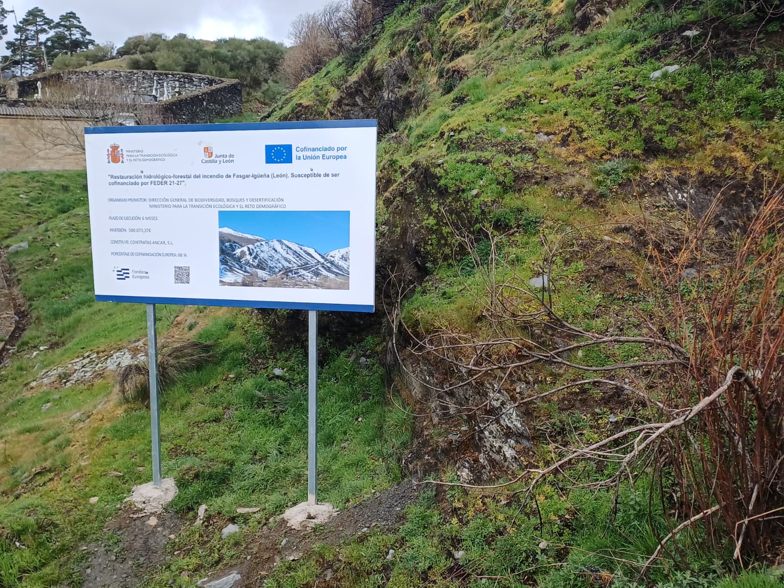 Esta actuación cuenta con una inversión de 500.073,37 euros y se desarrolla en los términos municipales de Murias de Paredes e Igüeña, cuyos alcaldes también estuvieron presentes. Los trabajos se centran en el control de la erosión, la restauración de la cubierta vegetal y la mejora de las infraestructuras forestales y del drenaje, con el objetivo de estabilizar el terreno y favorecer la recuperación del ecosistema.