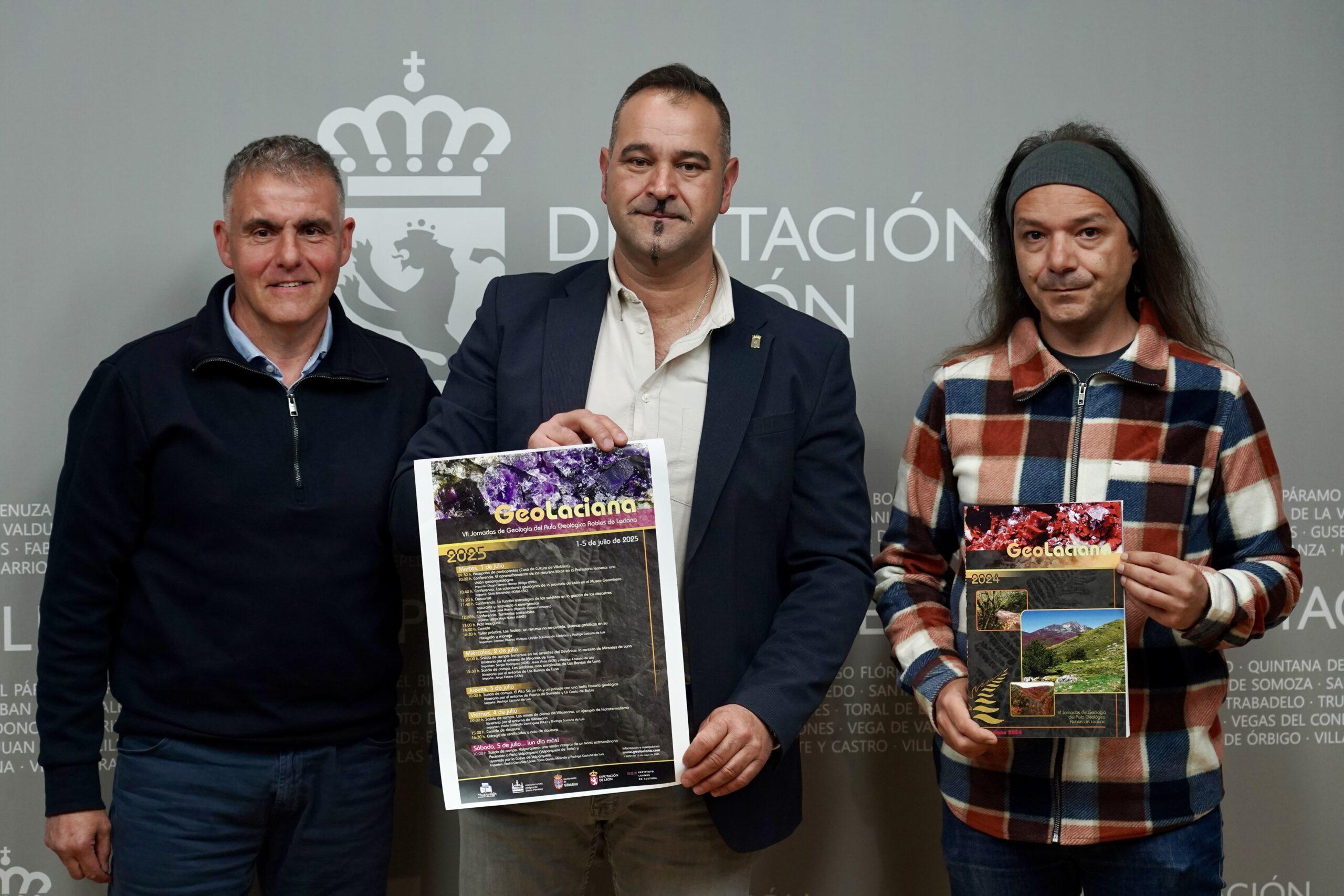 El diputado de Cultura, Arte y Patrimonio de la Diputación de León, Emilio Martínez, acompañó en el día de hoy a los organizadores de las VII Jornadas Geolaciana en su presentación, en la que celebró su objetivo de “fomentar la educación en geología, favorecer la investigación y divulgación y poner en valor estos recursos en las comarcas de la provincia”, donde existen “más de un centenar lugares interés geológico”.