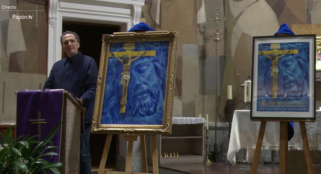 La Cofradía Santo Cristo de la Bienaventuranza ha dado inicio oficial a la Cuaresma con la presentación del cartel que anuncia la Semana Santa 2026. El acto ha tenido lugar este Miércoles de Ceniza, 18 de febrero, en la Iglesia de San Claudio, sede canónica de la hermandad leonesa.