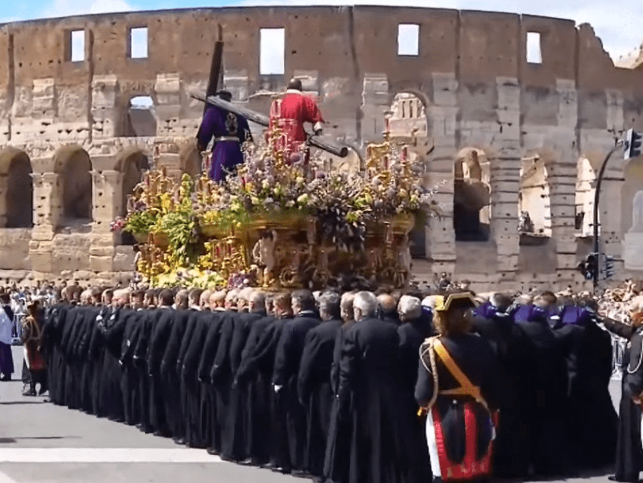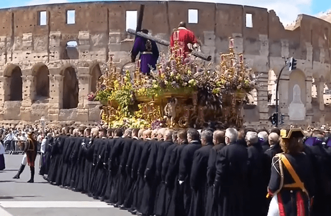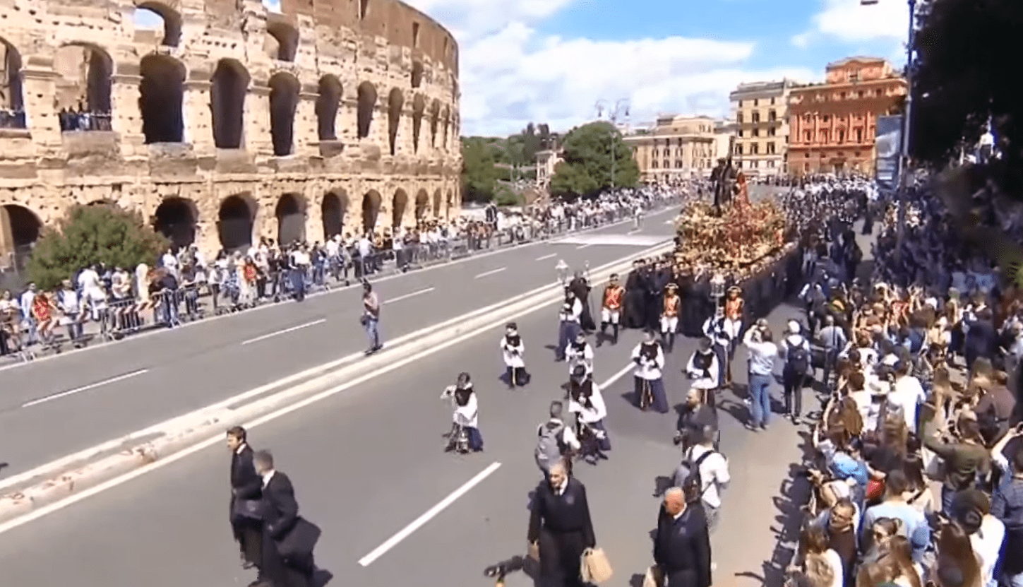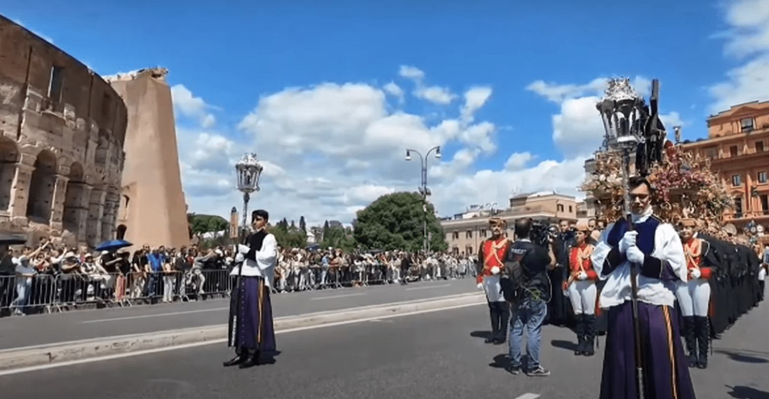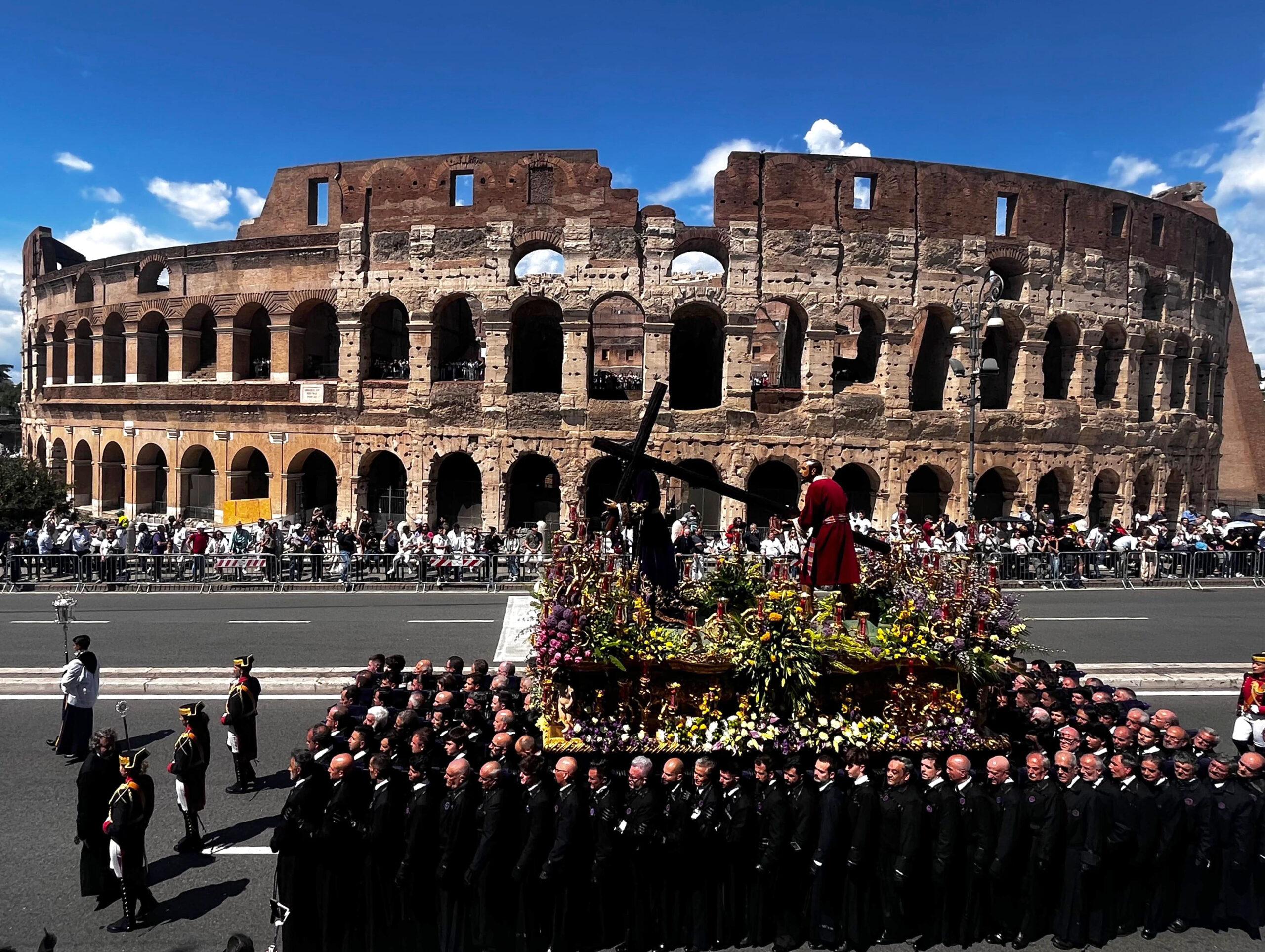 - El Señor de León desfila orgulloso a los pies del Coliseo romano en una procesión que durará toda la tarde y parte de la noche