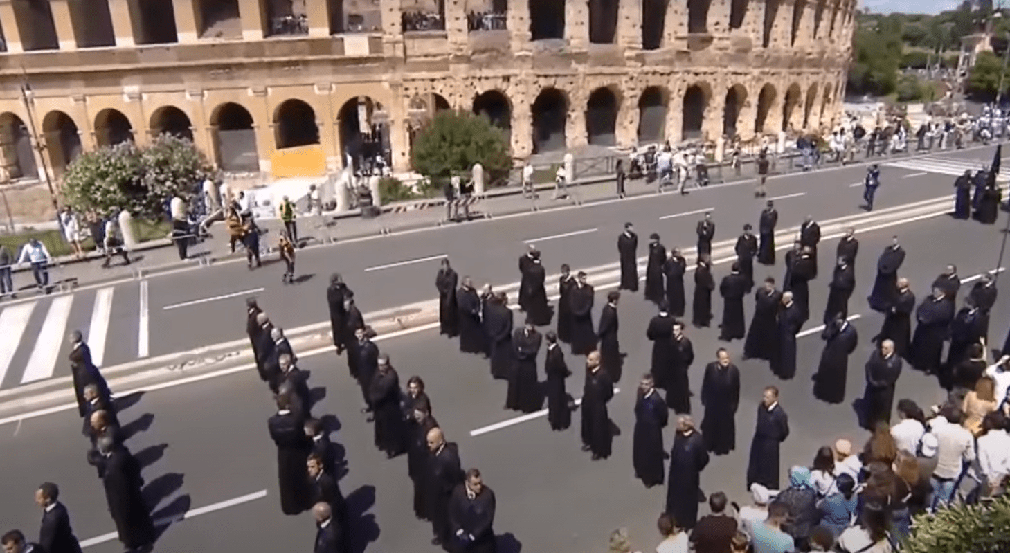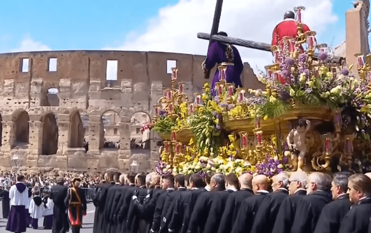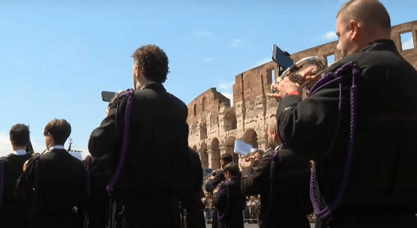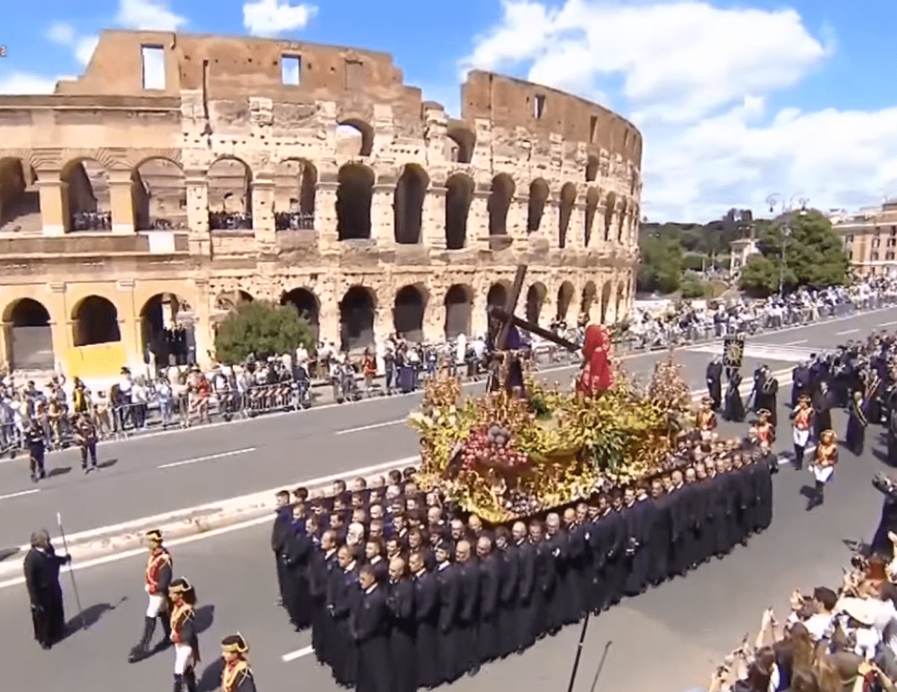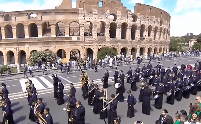 - El Señor de León desfila orgulloso a los pies del Coliseo romano en una procesión que durará toda la tarde y parte de la noche