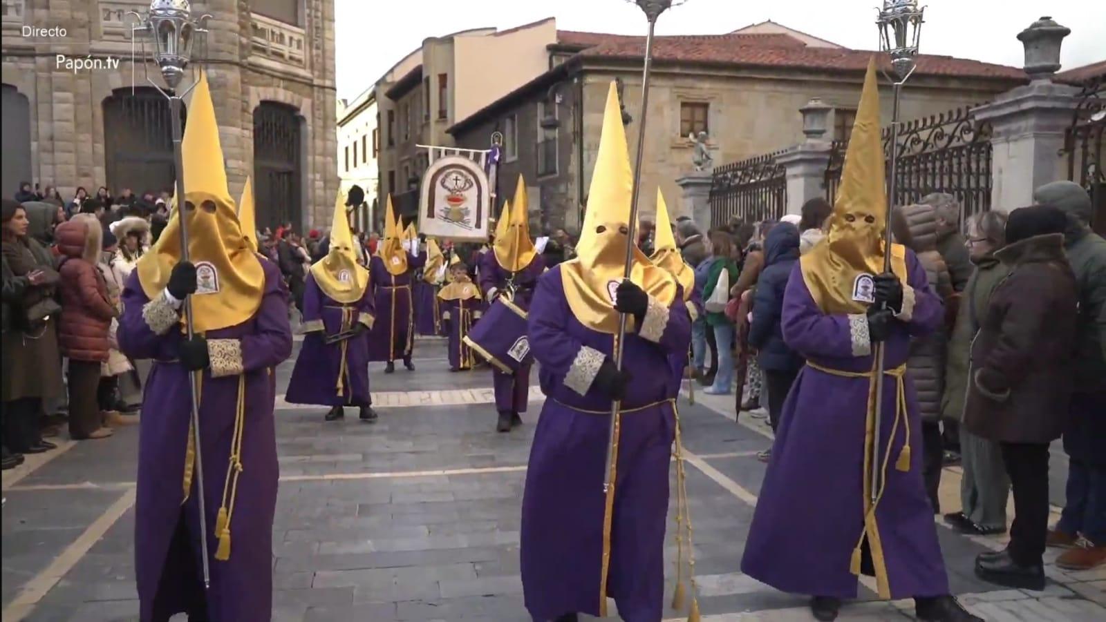 El hábito de la cofradía es uno de los más llamativos de la Semana Santa Leonesa. Se compone de túnica morada con bocamangas de oro, capillo y cíngulo de oro. Guantes, calcetines y zapatos negros completan la vestimenta. La Junta de Seises viste capa morada con galón de oro.