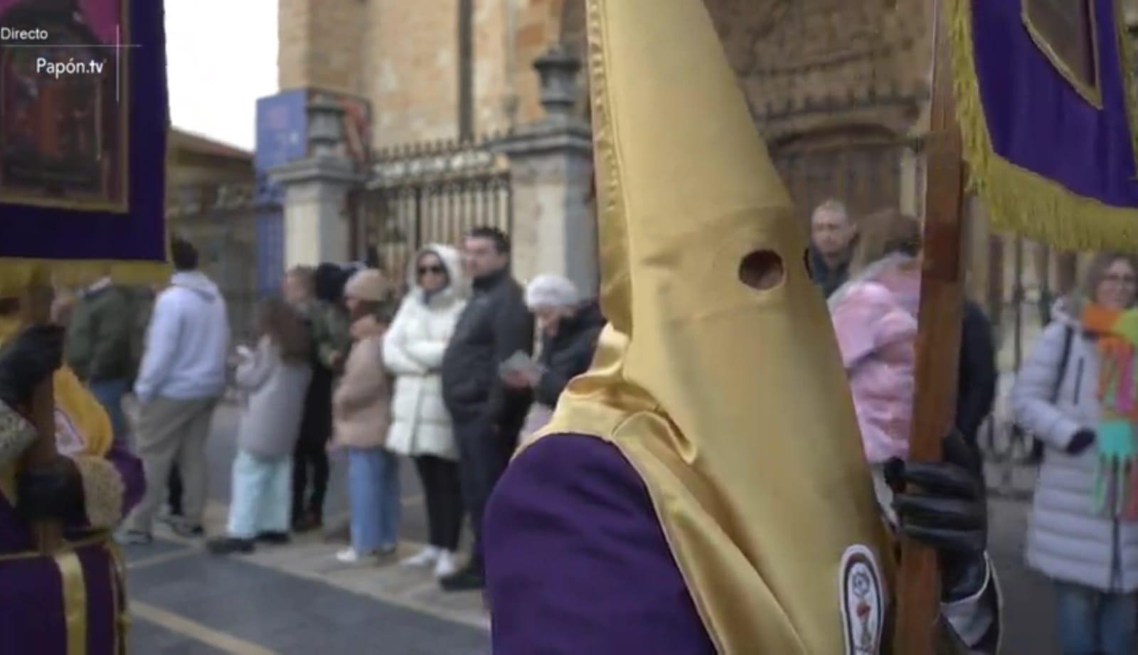 Este Miércoles Santo, 16 de abril de 2025, la Procesión Jesús Camino del Calvario, de la Cofradía La Agonía de Nuestro Señor ha logrado una tarde envidiable dentro de la inestabilidad que se está viviendo esta Semana Santa en León. Aunque los cientos de leoneses que han visto pasar la procesión a los pies de la catedral han comentado el frío que hacía a pie firme en este miércoles en el que las temperaturas caerán hasta un solo grado.