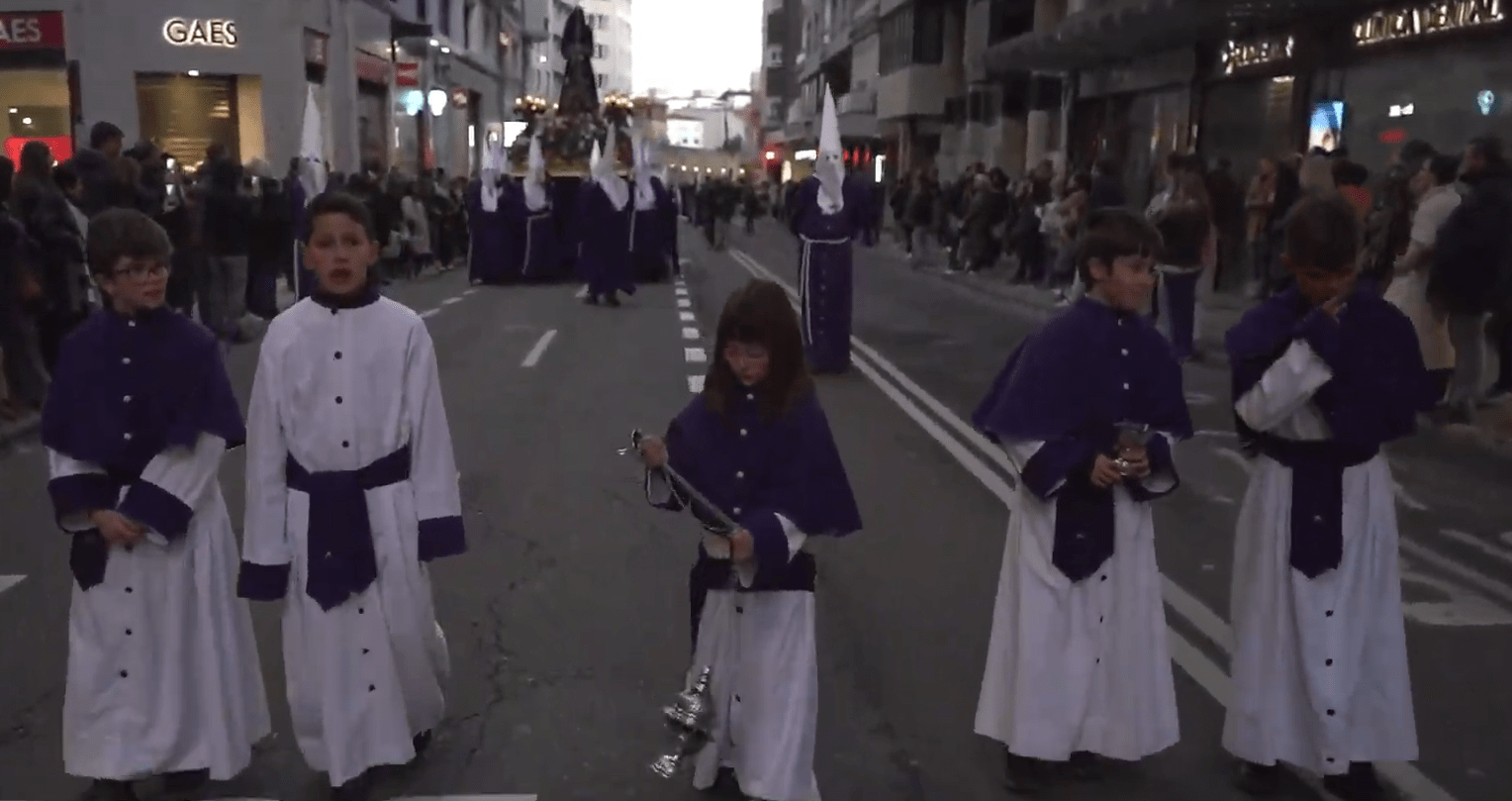 Este Miércoles Santo ha perdonado y finalmente no ha habido precipitaciones durante la tarde. Sin embargo, ha sido una jornada muy fría, rozando los cero grados, pero no impidiendo que las procesiones salieran. Es el caso de la Procesión del Silencio Cofradía Santísimo Cristo de la Expiración y del Silencio que parte de la iglesia de San Francisco y recorre el centro de la capital leonesa.