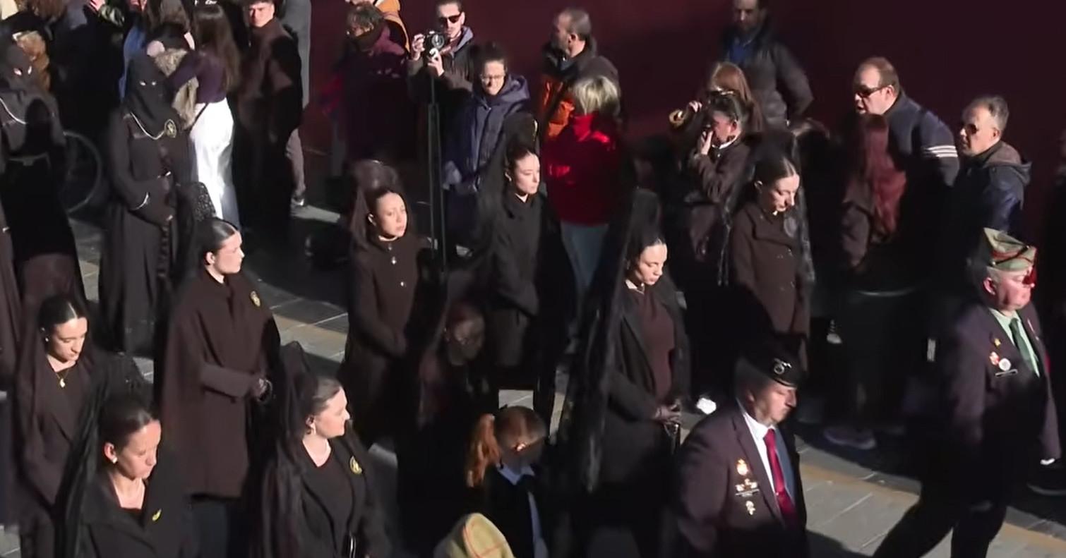 Tras abandonar el entorno de la Catedral en la Plaza de Regla, la procesión avanzó por la emblemática calle Ancha, donde la túnica negra y los capillos de la cofradía contrastaron con la luz del atardecer. El paso de las imágenes por puntos clave como Varillas, Platerías y la Plaza Mayor ofreció estampas de gran belleza, subrayando el recogimiento que caracteriza a esta hermandad.