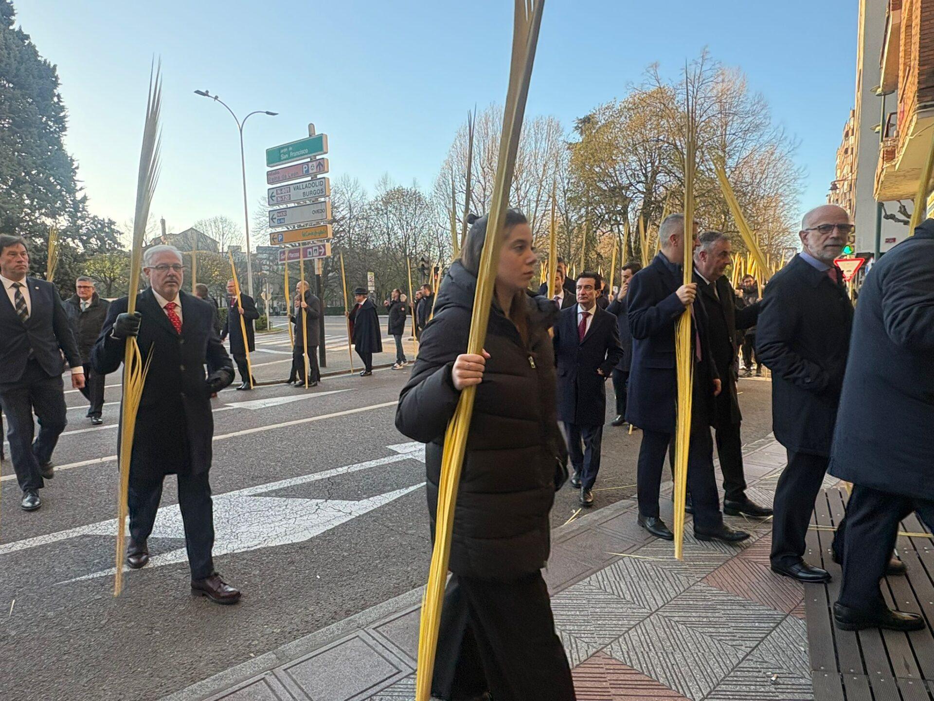 La Semana Santa de León ha iniciado su jornada de Domingo de Ramos con la celebración de la Procesión de las Palmas, un acto marcado por la devoción matinal en el entorno de la Capilla de Santa Nonia.