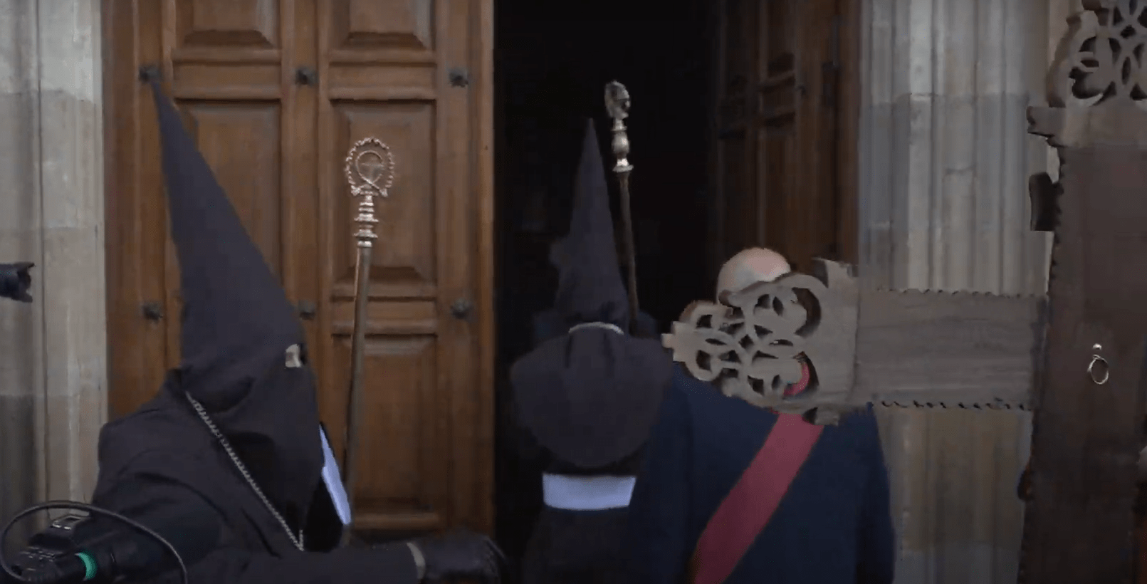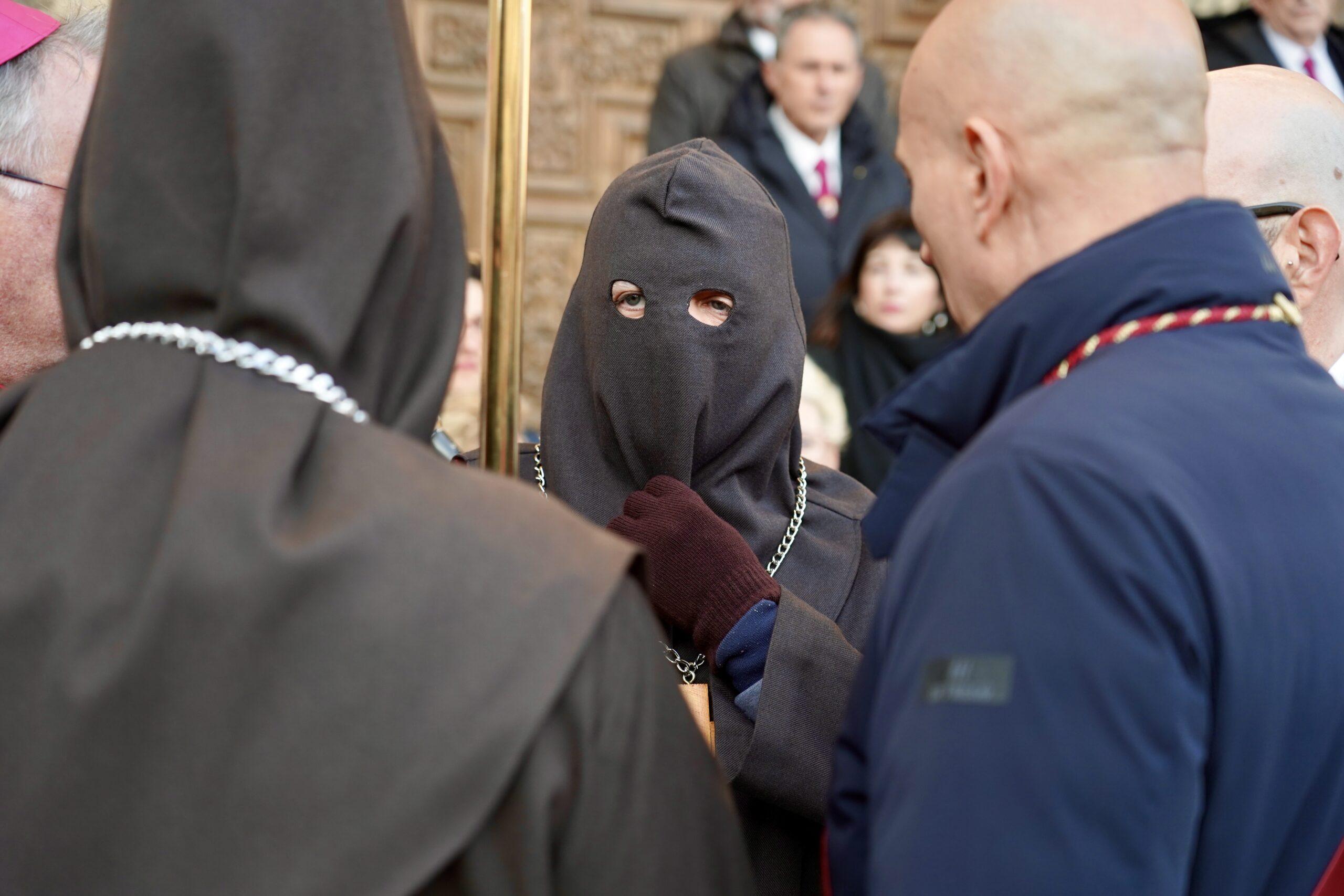 Miriam Badiola / ICAL. La Cofradía del Santo Cristo del Perdón sacó hoy a las calles de la ciudad de León la Procesión del Perdón que, a pesar de haber mantenido la esperanza hasta el último momento, estuvo protagonizada por la libertad condicional de un hombre ante la ausencia de indulto concedido por el Consejo de Ministros.