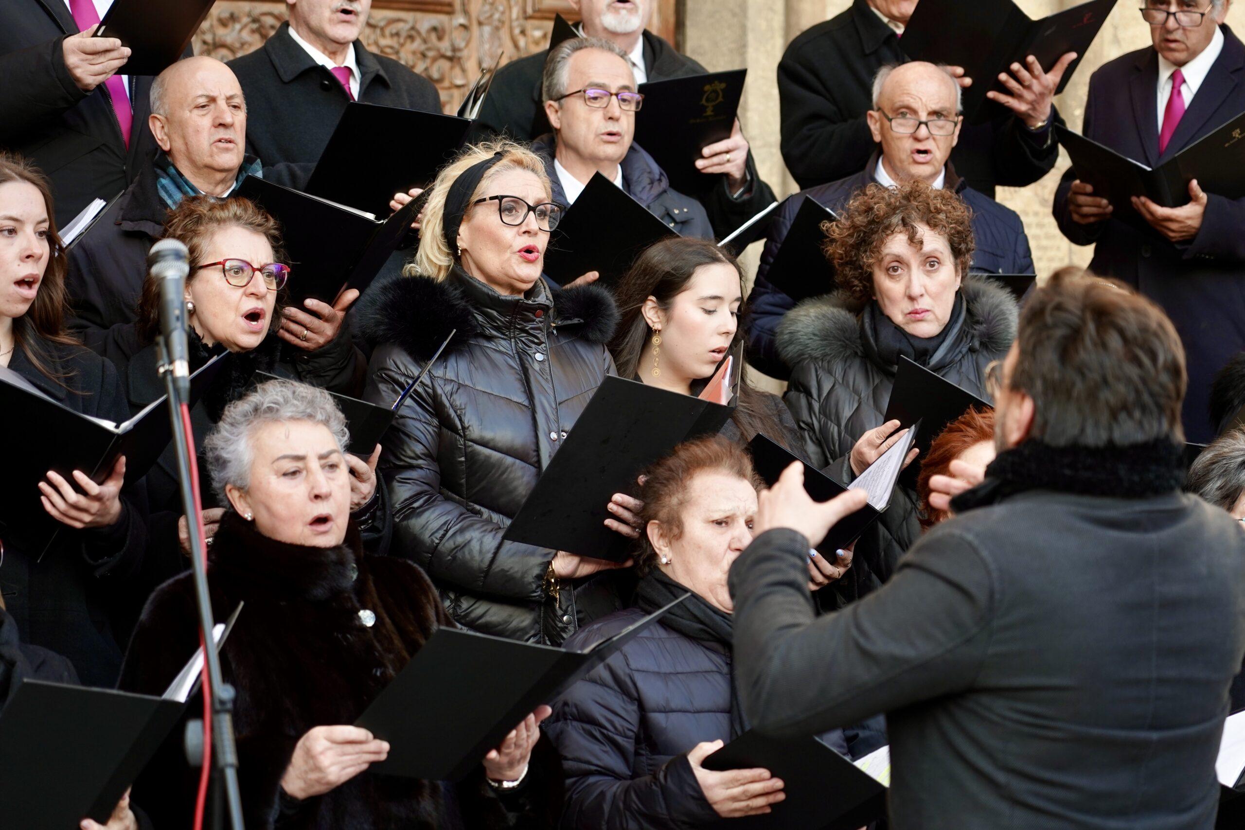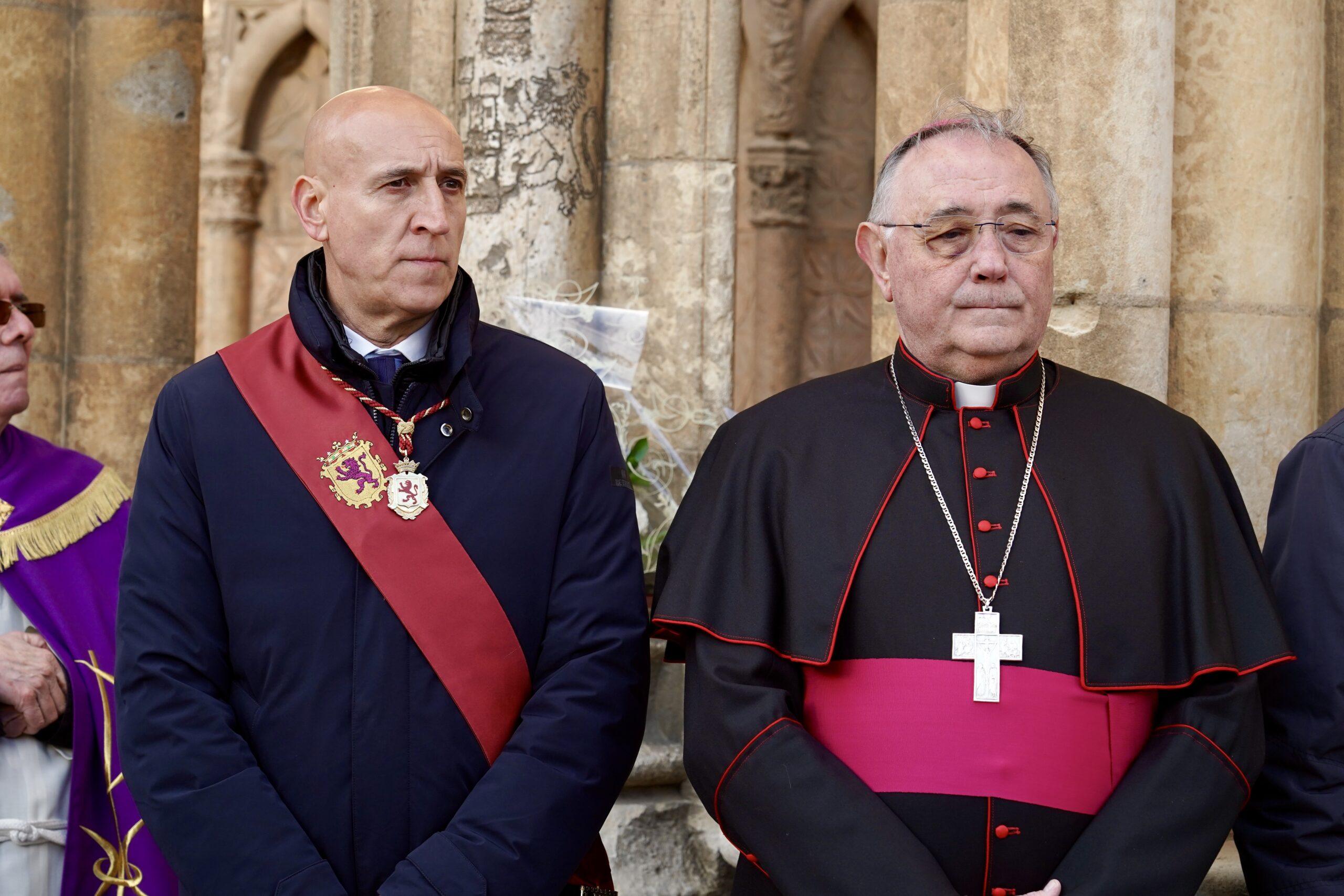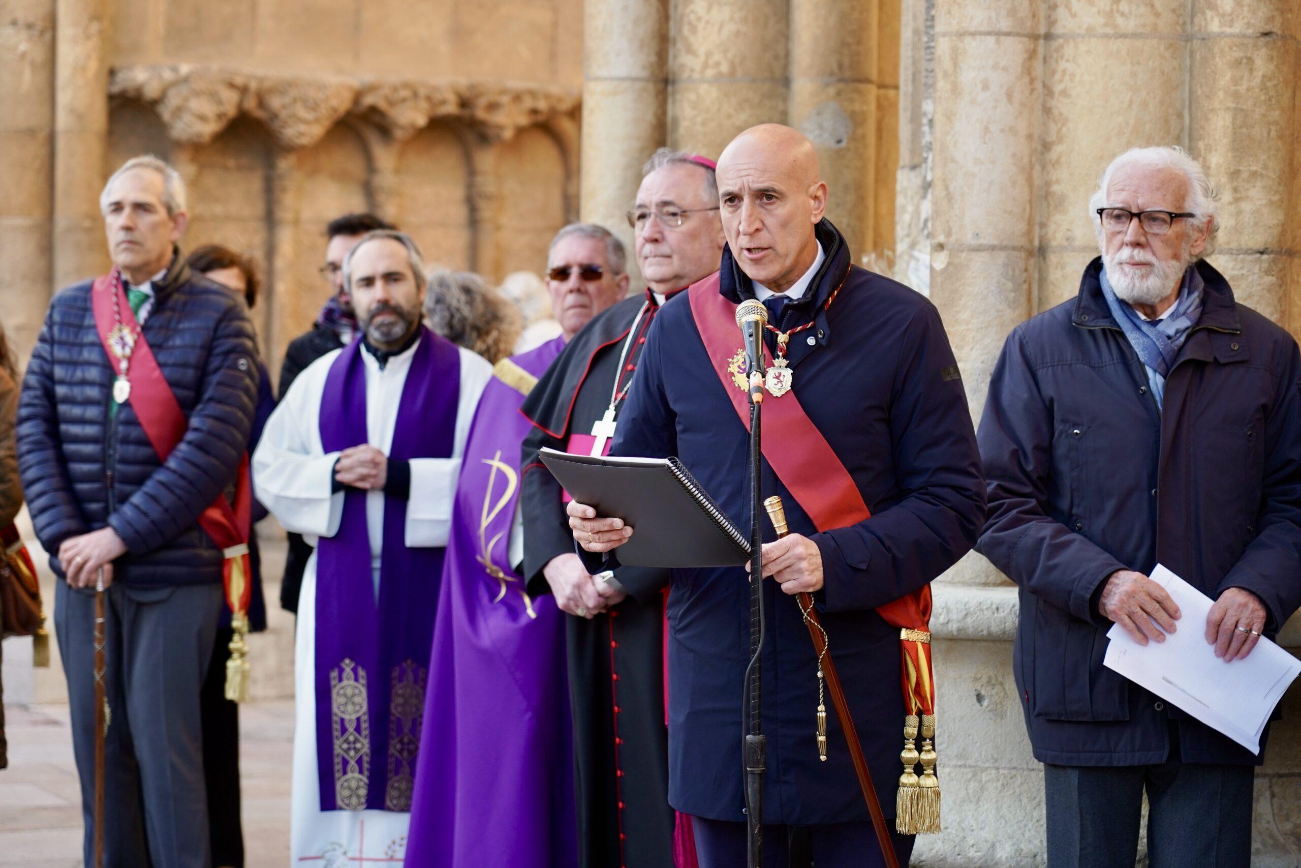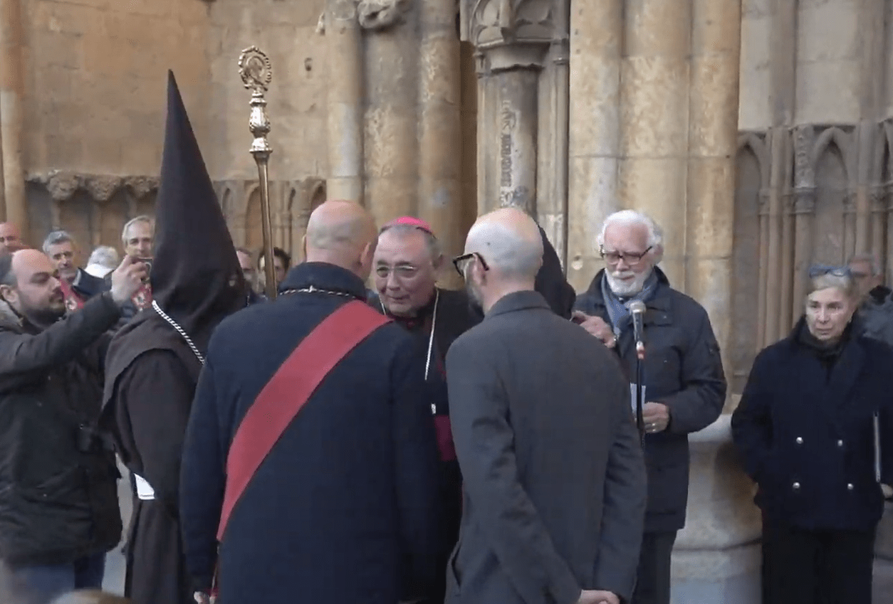 El preso y su liberación protagonizaron este Martes Santo el acto del Perdón, que se celebra ante el Locus Apellationis (lugar de apelación), en el pórtico de la catedral de la ciudad, con la presencia de numerosas autoridades y con la colaboración del Orfeón Leonés.