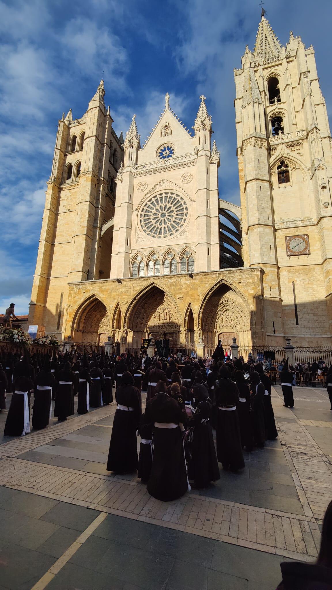 Itinerario: Salida: Patio del Convento de Santa Cruz Hermanas Clarisas, Convento, Cardenal Landázuri, Plaza Nuestra Señora de Regla. En el Locus Apellationis, ante el pórtico de la S.I. Catedral y con la colaboración del Orfeón Leonés, se celebrará el acto del Perdón.