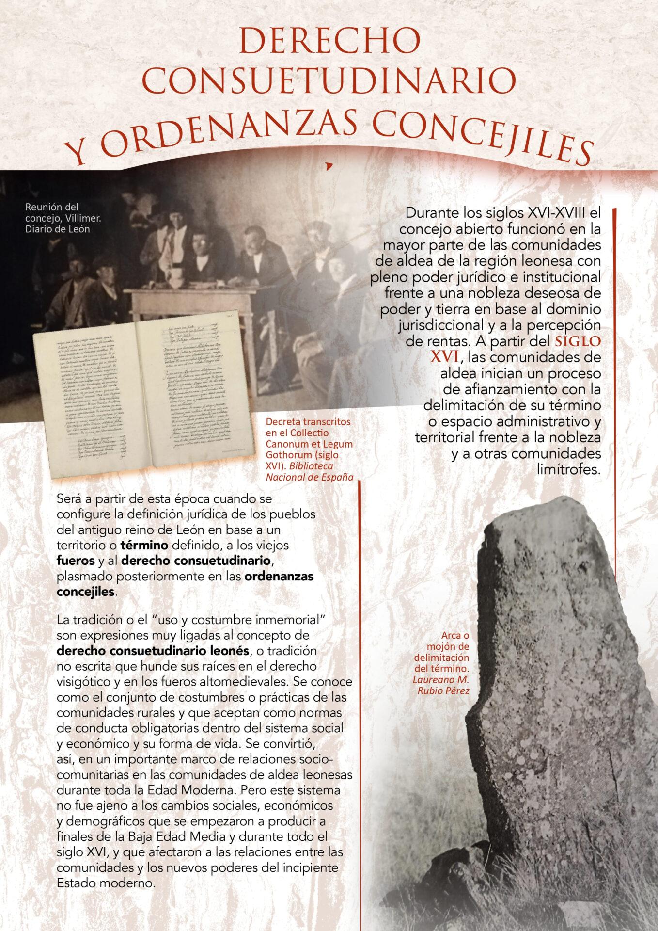 En el caso concreto de ‘El concejo leonés’, detalló que se ha intentado ofrecer una visión del ámbito institucional, organizativo y social leonés en torno a la figura del concejo en sus vertientes como institución como tal y como asamblea vecinal. Para ello, se abordan desde los orígenes del concejo y su desarrollo histórico posterior, pasando por sus competencias y atribuciones, hasta sus facetas material e inmaterial y su vinculación con la actual institución de la junta vecinal, heredera del antiguo concejo.