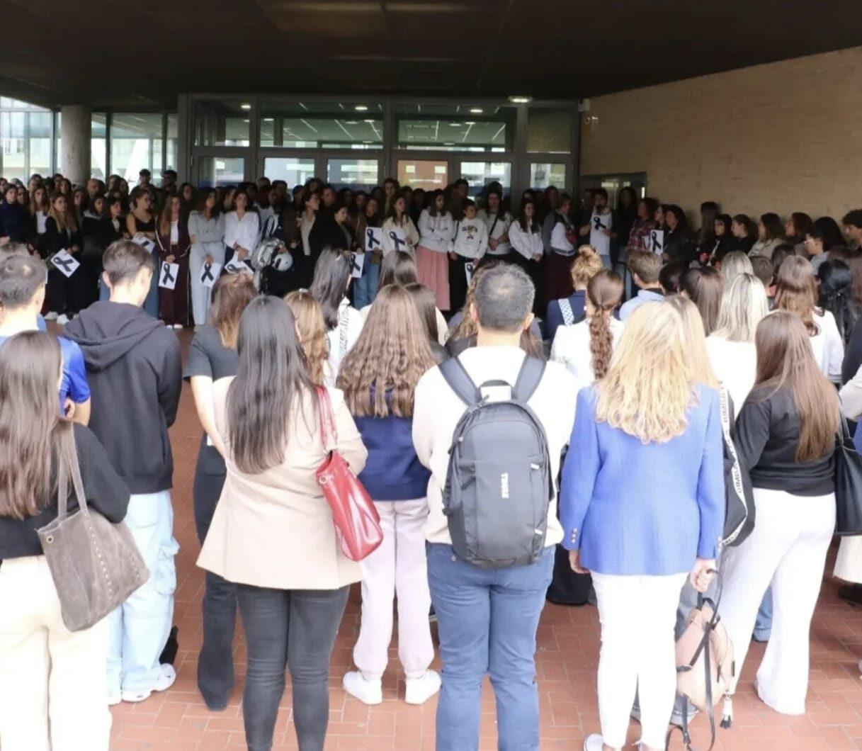 El silencio, roto solo por la emoción contenida, se apoderó de la entrada de la Facultad de Educación a las 12:00 horas de este miércoles. El encuentro se llevó a cabo para recordar a la joven poeta, alumna de segundo curso del Grado en Educación Social, y para arropar con cariño a su familia en estos momentos de inmenso dolor, especialmente a su madre, presente en el acto.