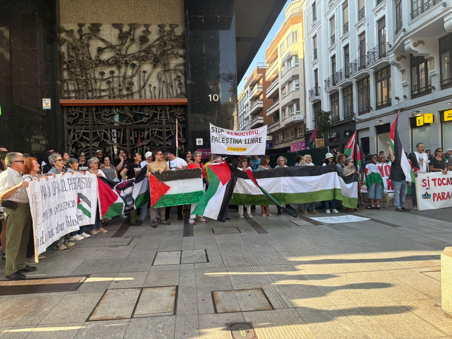 La manifestación por Palestina en León ha llenado esta tarde la esquina de Ordoño II con la calle Alfonso V, frente al Ayuntamiento, con alrededor de 200 personas en apoyo a Gaza. Se han concentrado en torno a las 18:30 horas para denunciar la situación en la franja y exigir el fin de la violencia.