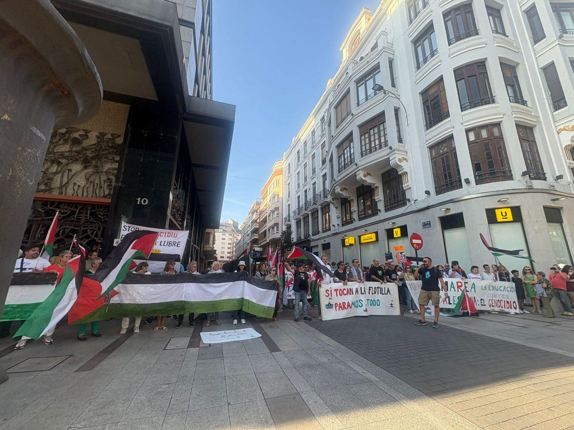 Con pancartas que clamaban “Stop genocidio”, “Todos con Gaza” o “Si tocan a la flotilla, paramos todo”, los manifestantes han convertido el corazón de la ciudad en un altavoz de solidaridad internacional.